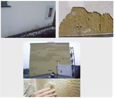 ■滲漏時(shí),不合格巖棉吸水膨脹,破壞體系的耐久性