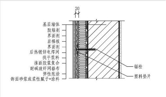 巖棉板復(fù)合找平漿料外墻外保溫系統(tǒng)基本構(gòu)造